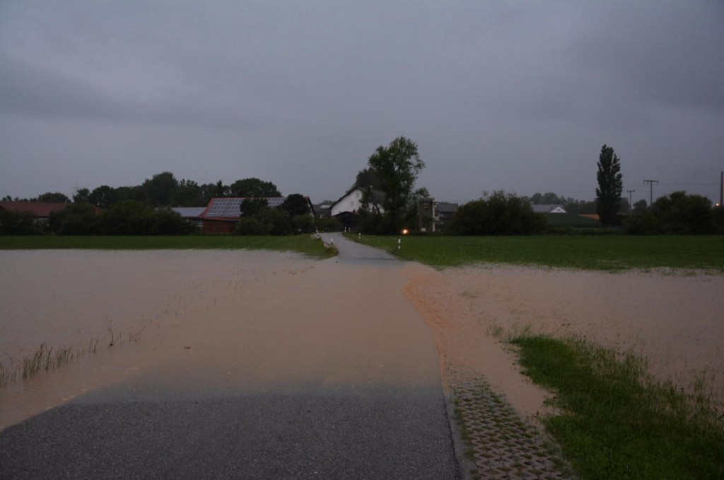 Land unter herrscht in weiten Teilen des Landkreis Landshut. Ein Heftiges Unwetter mit massiven Regenfälle setzten am Dienstagabend, 12.06.2018 gegen 18:30 Uhr ein und ließen die Pegel Bäche und Flüsse sowie deren Zuläufe rasant ansteigen.