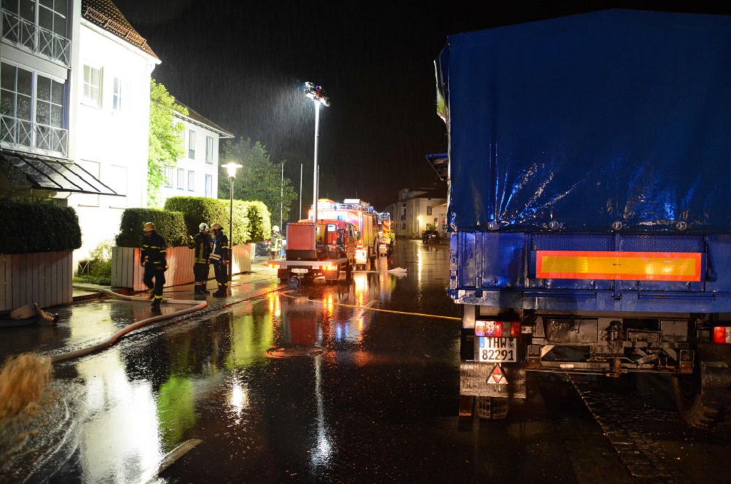 Zusätzlich zu den eigenen Einsatzkräften waren weitere 13 Feuerwehren und das THW Ergolding mit ca. 200 Kräften in Geisenhausen im Einsatz.