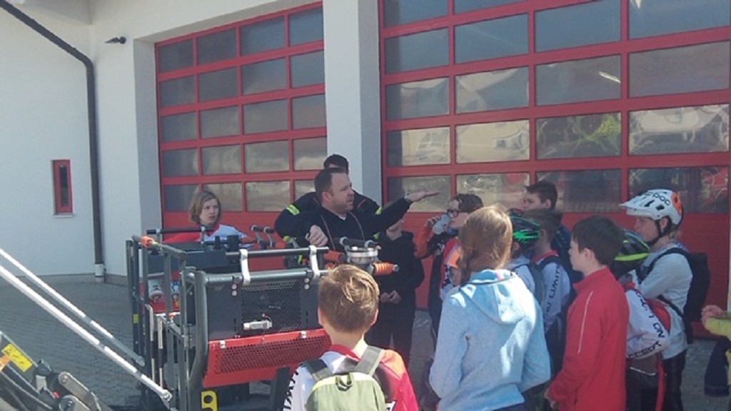 Zuerst wurden die Gruppen zweigeteilt und besuchten jeweils im Wechsel das Freibad sowie die Kläranlage. Im Freibad führte Christian Molzer die Jugendgruppen durch das Gelände, erklärte den Tagesablauf der Bademeister und gab interessante Einblicke in die Technik. Das das Bad erst im letzten Jahr frisch renoviert wurde und im Zuge dessen die Technik erweitert wurde, gab es für Jung und Alt einiges zu entdecken.Die teils empfindlichen Nasen der Kids wurden in der Kläranlage auf die Probe gestellt. Klärwärter Erich Ippenberger führte die Gruppen durch die Anlage und erklärte anschaulich den Ablauf der Abwasserreinigung vom Zulauf durch die Kanalisation bis zum Abfluss in die kleine Vils. Der Beruf des Klärwärters wurde ebenfalls vorgestellt, der über zahlreiche handwerkliche, organisatorische und Labortätigkeiten äußerst umfangreich ist.Im Anschluss daran rollten die Biker geschlossen in den Bauhof ein wo es erst mal Zeit für eine kleine Brotzeit gab. Franz Strasser hatte schon Getränke bereit gestellt und führte anschließend durch den Bauhof und stellte dabei die Tätigkeiten sowie die zur Verfügung stehenden Fahrzeuge und Technik vor.Zu guter Letzt strampelte die Truppe zur freiwilligen Feuerwehr wo schon Kommandant Michael Stirner mit seinen Helfern Johann Hochholzer und Stefan Stoffl bestens vorbereitet warteten. Begonnen wurde mit einem Rundgang durch die Feuerwache und Vorstellung der Einsatzfahrzeuge. Danach wurde das Hilfeleistungslöschfahrzeug mitsamt der mitgeführten Technik anschaulich vorgestellt. Als Johann Hochholzer dann in voller Montur mit Atemmaske vor den Jugendlichen stand, war die Truppe sehr beeindruckt. Das Highlight war dann die Vorführung des Drehleiter Fahrzeuges, bei der die Leiter dann auch komplett ausgefahren wurde.Ein besonderer Dank von Übungsleiter Martin Fischer geht an alle Beteiligten, die sich bestens auf die Führungen vorbereitet haben.